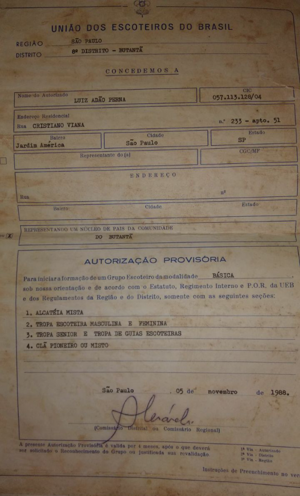 Portanto, em 05 de Novembro de 1988, foi fundado, na Cidade de São Paulo, um novo Grupo Escoteiro que prometia seguir os ditames de nosso grande mestre Baden Powell.